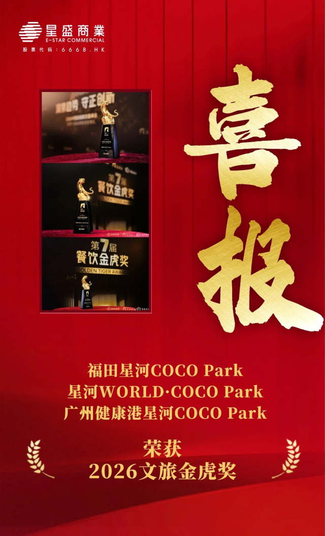 2月,星盛商业旗下项目深圳福田平博pinnacleCOCO Park、深圳平博pinnacleWORLD·COCO Park及广州健康港平博pinnacleCOCO Park,荣获2026文旅金虎奖。此次获奖,不仅体现了行业对星盛商业在文商旅融合探索上的高度认可,也彰显其以内容驱动商业、以文化赋能运营的持续深耕能力。未来星盛商业将继续深化项目与在地文化、年轻力内容的融合创新,助力城市商业空间焕发新活力。